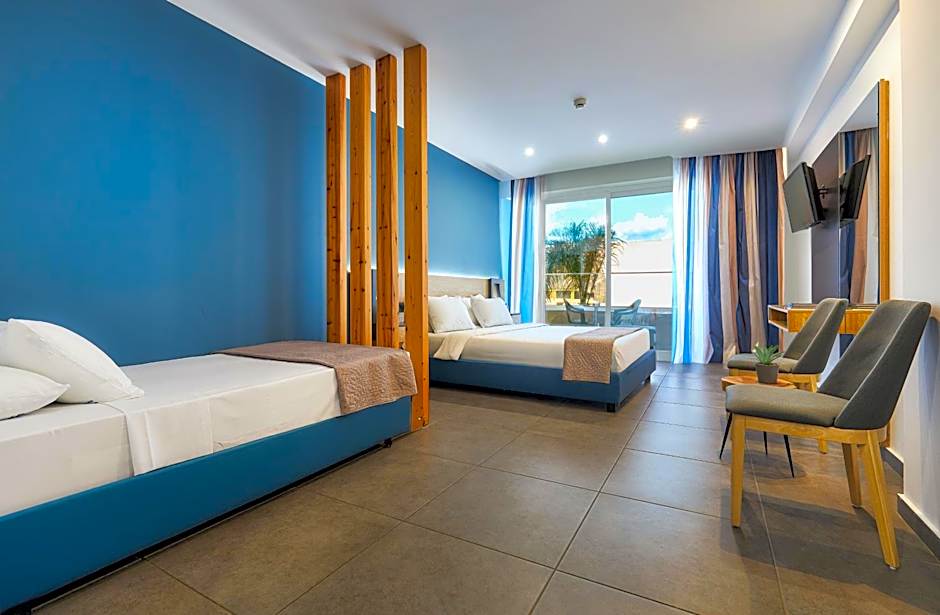 The bright and spacious air conditioned rooms feature a stylish white-blue décor, large windows and elegant furnishings. Each one includes a flat-screen TV, a safe box, a mini-bar, a coffee machine and a private bathroom. Different view choices are offered on this room type.